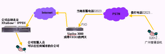 - 跨地域來電轉(zhuǎn)接,比如某個分支機構(gòu)的客戶撥叫該分支機構(gòu)電話,電話接起后,如果客戶需求沒有得到順利的答復,在客戶電話保持的情況下,可以將電話轉(zhuǎn)接到在全國的任何一個IPPBX分機上。