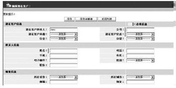 在使用中,我們也發(fā)現(xiàn),800CRM在某一界面中需要應(yīng)用的功能,往往需要進(jìn)入另一個(gè)頁面中進(jìn)行配置或維護(hù),這就要求系統(tǒng)使用者必須對系統(tǒng)有一個(gè)清楚的了解。