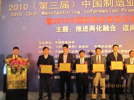CTI論壇(ctiforum)12月27日消息(記者 潘婷婷):12月16日,由中國(guó)信息協(xié)會(huì)聯(lián)合我國(guó)十幾家制造業(yè)行業(yè)協(xié)會(huì)共同舉辦的“2010(第三屆)中國(guó)制造業(yè)信息化推進(jìn)大會(huì)暨中國(guó)制造業(yè)信息化年度頒獎(jiǎng)盛典”在北京成功舉行。中國(guó)信息協(xié)會(huì)會(huì)長(zhǎng)盧時(shí)徹、中國(guó)機(jī)械工業(yè)聯(lián)合會(huì)特別顧問(wèn)、國(guó)家信息化專家咨詢委員會(huì)委員朱森第、工業(yè)和信息化部信息化推進(jìn)司安筱鵬等領(lǐng)導(dǎo)出席此次活動(dòng)并發(fā)表演講。會(huì)上,八百客獲得“2010年度CRM領(lǐng)軍企業(yè)”大獎(jiǎng),至此,八百客已經(jīng)斬獲“中國(guó)云計(jì)算領(lǐng)軍企業(yè)”和“CRM領(lǐng)軍企業(yè)”雙料大獎(jiǎng),為2010年畫上了圓滿的句號(hào)。