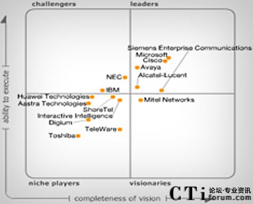 CTI論壇(ctiforum)10月8日消息(記者 楊佳林):在最近公布的2011年度Gartner統(tǒng)一通信魔法象限中,Avaya憑借其卓越“執(zhí)行能力”和“愿景完成度”躋身領(lǐng)導者象限。