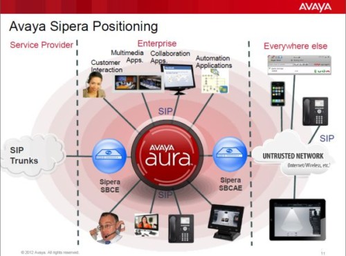 收購Sipera,Avaya獲得了適用于會話啟動協議(SIP)中繼的企業(yè)級會話邊界控制技術,從而增強Avaya統一通信產品線的實力,并為客戶和渠道合作伙伴提供更大的靈活性,幫助他們實現各種安全功能進而創(chuàng)造商業(yè)價值。Sipera開放的、基于標準的解決方案適用于Avaya和非Avaya網絡。Sipera解決方案與Avaya Aura整合后,將能為客戶提供安全的VoIP、SIP中繼、視頻會議、基于云的通信、即時通信以及協作工具,使客戶能隨時隨地為使用企業(yè)級或消費類設備的員工提供服務。