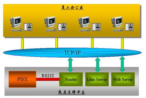 系統(tǒng)構(gòu)造基于Web/Brower方式,每個(gè)員工端無需安裝任何軟件,只需通過啟動(dòng)IE,輸入您的分機(jī)號便可方便地選擇自己當(dāng)天的工作位置。