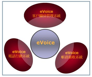 eVoice電話營(yíng)銷應(yīng)用系統(tǒng)、帳務(wù)催收應(yīng)用系統(tǒng)、客戶關(guān)系管理應(yīng)用系統(tǒng)