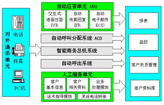 ACD(自動(dòng)呼叫分配)是呼叫中心有別于一般的熱線電話系統(tǒng)的重要部分,在一個(gè)呼叫中心中,ACD成批的處理來(lái)話呼叫,可根據(jù)用戶類別、客戶支持的忙閑統(tǒng)計(jì)、客戶支持的服務(wù)能力、不同時(shí)段、主叫用戶的號(hào)碼、該用戶曾聯(lián)絡(luò)過(guò)的客戶支持、客戶支持的專業(yè)技能等級(jí)等信息并將這些來(lái)話進(jìn)行分配給具有相關(guān)職責(zé)或技能的各個(gè)業(yè)務(wù)代理。ACD提高了系統(tǒng)的效率,減少了客戶服務(wù)中心系統(tǒng)的開(kāi)銷,并使公司能更好的利用客戶資源。