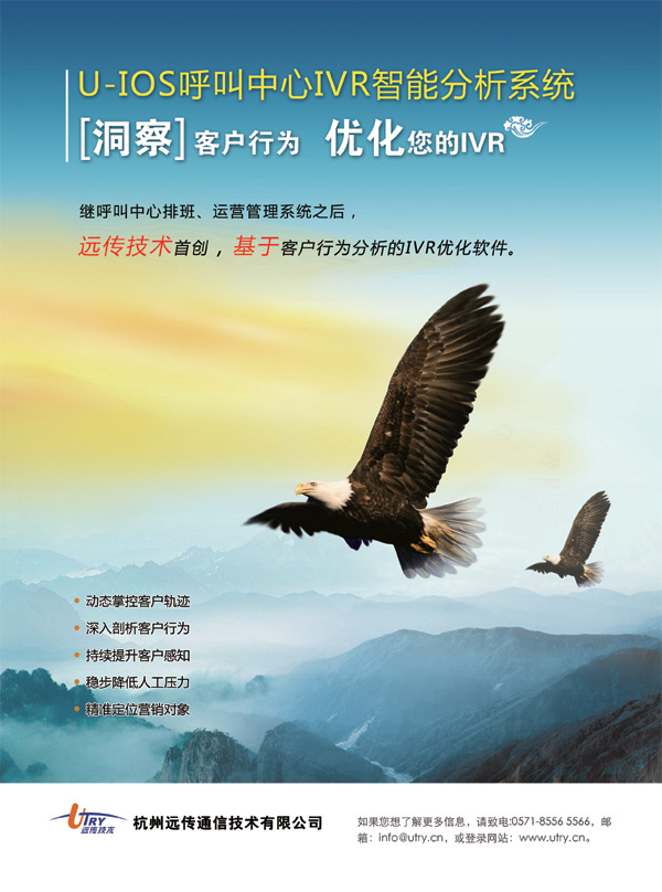 杭州遠傳通信技術(shù)有限公司是國家高新技術(shù)企業(yè)、雙軟企業(yè),具備軟件成熟度CMMI 3級資質(zhì),是專業(yè)的客戶服務管理軟件及咨詢服務提供商。公司以“追求卓越”和“客戶滿意”為目標,致力于呼叫中心、營業(yè)廳等客戶服務渠道的管理提升和信息化。憑借著公司細致周到的服務,扎實穩(wěn)健的技術(shù)實力,公司在電信、金融、保險、旅游、航空、電力、互聯(lián)網(wǎng)及電子商務等行業(yè)領域擁有著眾多的成功案例,獲得了客戶的廣泛贊譽。