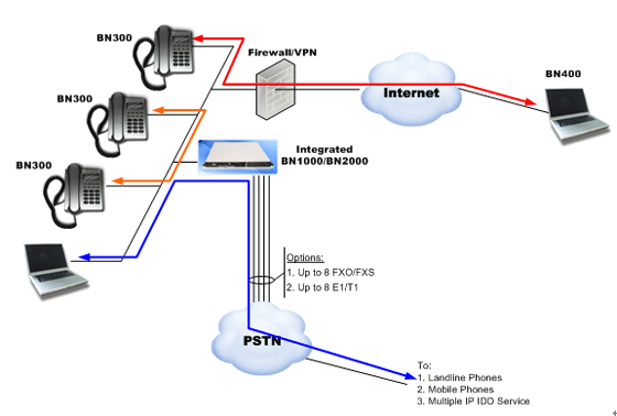 - BN2000 IP-PBX具有動(dòng)態(tài)路由選擇功能,支持用戶訂購多種IP國際長途電話(IP IDD)服務(wù)。