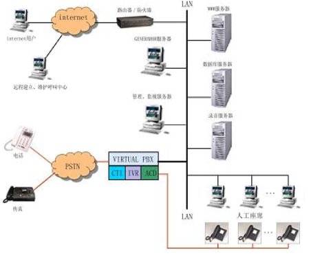 呼叫中心服務(wù)器是系統(tǒng)的主要組成部分,起著橋梁的作用,其用戶通過PSTN與業(yè)務(wù)系統(tǒng)及人工坐席相連,其具體功能如下: