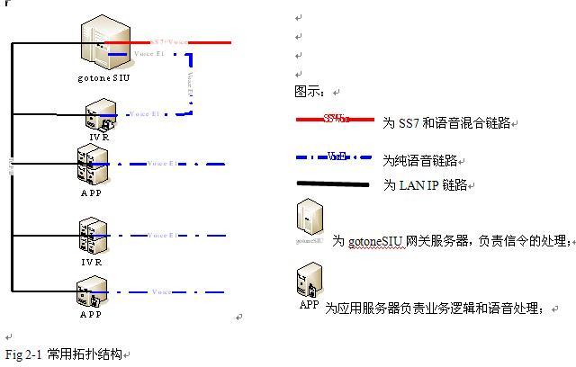 陽江電信跟系統(tǒng)集成商根據(jù)實際情況和專家評審團的評定最后選擇了高性價比的gotoneSIU PCCS6,2E1的SS7網(wǎng)關(guān)系統(tǒng),經(jīng)過我們工程師的指導,3天內(nèi)系統(tǒng)便集成完成。系統(tǒng)采用了業(yè)界免費穩(wěn)定的Redhat Linux9.0作為操作系統(tǒng),IPC6102U工控機作為系統(tǒng)的計算平臺,采用7X24 小時不間斷運行設計思想。系統(tǒng)的拓撲結(jié)構(gòu)如下: