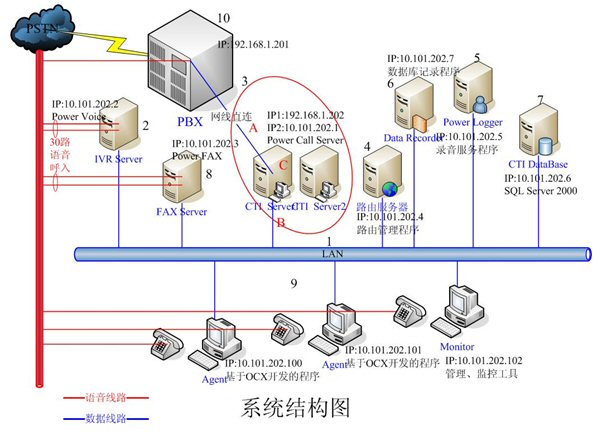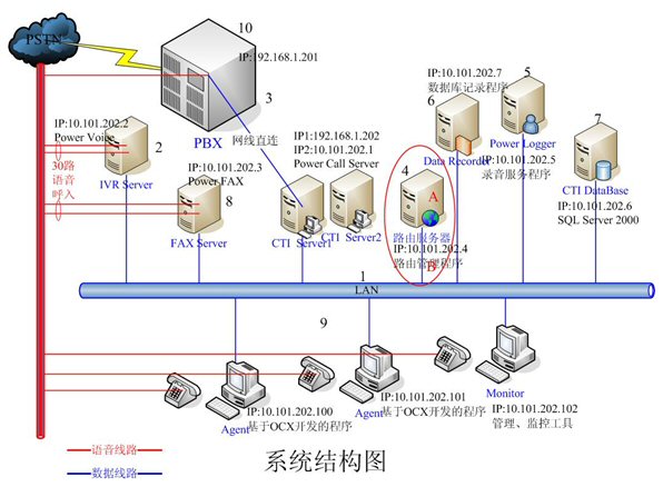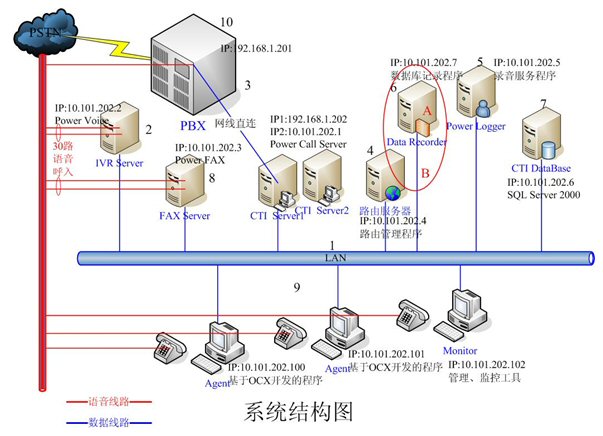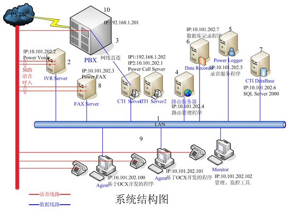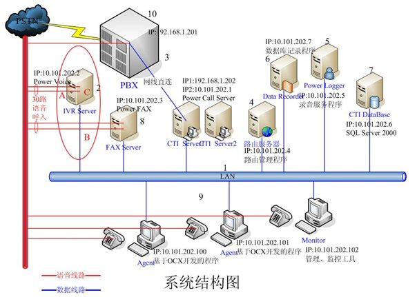 - IVR Server和FAX Server采用高品質(zhì)的工控機(jī),配置和軟件環(huán)境基本一樣。每臺(tái)機(jī)器均有30路語音接入,分別裝有一套Power