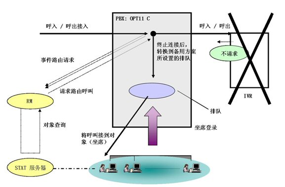 Manger控制,Route Manager根據(jù)系統(tǒng)的設(shè)定將電話轉(zhuǎn)接給滿足條件的坐席。
