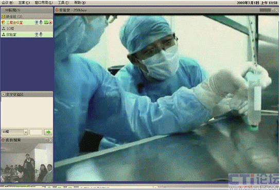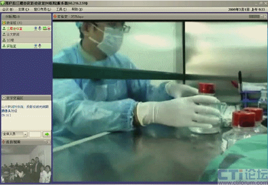 聽(tīng)完眾多專(zhuān)家的精彩介紹后,與會(huì)人員希望能夠看到干細(xì)胞移植治療的臨床應(yīng)用現(xiàn)場(chǎng)演示。而干細(xì)胞移植過(guò)程是在專(zhuān)門(mén)的實(shí)驗(yàn)室里面進(jìn)行,一是實(shí)驗(yàn)室的面積比較小,容納不了這么多人員參加,另外實(shí)驗(yàn)室環(huán)境要求非常嚴(yán)格。如何把實(shí)驗(yàn)室里面的現(xiàn)場(chǎng)演示展示給眾多與會(huì)人員,這令會(huì)議的組織者非常頭疼。山大聯(lián)潤(rùn)了解到濟(jì)南軍區(qū)總醫(yī)院遇到的困難后,派專(zhuān)門(mén)的技術(shù)人員與實(shí)驗(yàn)室充分交流,為他們提供了一個(gè)很好的可實(shí)施方案。在實(shí)驗(yàn)室安裝了一個(gè)可遙控的攝像頭,通過(guò)視維視頻會(huì)議遠(yuǎn)程遙控觀看實(shí)驗(yàn)室現(xiàn)場(chǎng)。在實(shí)驗(yàn)室里面的江主任與他同事一邊做實(shí)驗(yàn),一邊與場(chǎng)外的人員溝通交流。