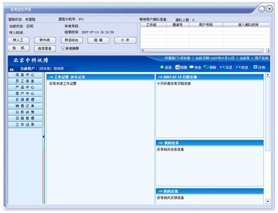 多種排隊機制,所有來電排隊信息都有顯示,提供對來電上移、下移、 移到最前或轉自動臺處理等多種可選擇的排隊功能,來電可根據(jù)服務要求,選擇不同的服務部門及人員,系統(tǒng)都做了優(yōu)化處理.