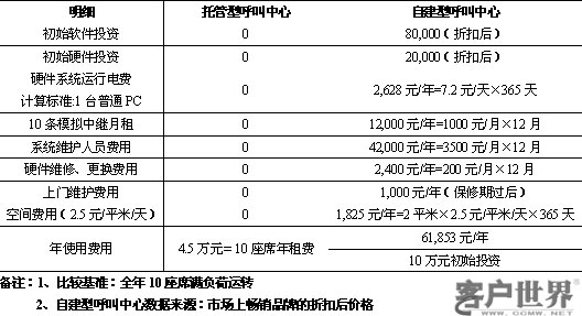 租用呼叫中心與自建呼叫中心成本對(duì)比表