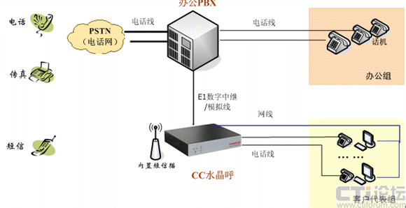 CC水晶呼與辦公PBX融合組網(wǎng)示意圖