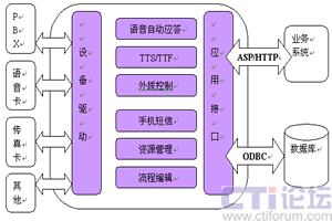 CTI服務(wù)器是整個(gè)系統(tǒng)的核心,通過(guò)內(nèi)置電話(huà)語(yǔ)音/傳真卡,接入PSTN電話(huà)網(wǎng)。該服務(wù)器可作為一個(gè)相對(duì)獨(dú)立的系統(tǒng)單獨(dú)運(yùn)行,也可以通過(guò)企業(yè)局域網(wǎng)與企業(yè)的業(yè)務(wù)系統(tǒng)連接。