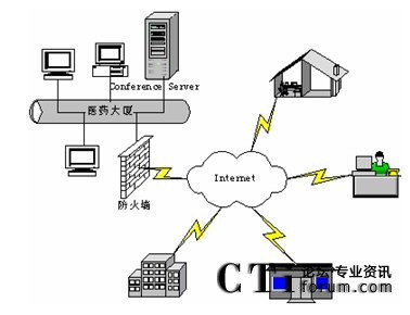 視頻會議服務(wù)器設(shè)置在上?偛,通過電信的6M帶寬接入互聯(lián)網(wǎng),并配備有廣域網(wǎng)靜態(tài)IP地址。下屬生產(chǎn)基地和分支機(jī)構(gòu)通過電信ADSL接入和光纖接入等方式接入互聯(lián)網(wǎng)。這些點(diǎn)能夠?qū)崿F(xiàn)網(wǎng)絡(luò)視頻會議通訊,進(jìn)行音頻、視頻和數(shù)據(jù)的多方溝通。