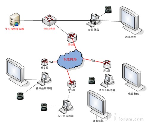 紅杉樹網(wǎng)絡(luò)視頻會(huì)議系統(tǒng)在潤華集團(tuán)總部機(jī)房部署服務(wù)器,通過公司VPN網(wǎng)絡(luò),與各地市相聯(lián)。