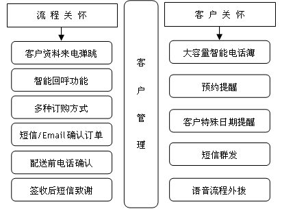 可與企業(yè)既有的800或400電話相結(jié)合,包含1至16個(gè)客服人員坐席設(shè)置,主要處理實(shí)時(shí)的產(chǎn)品售前售后咨詢、電話訂單受理等呼入類業(yè)務(wù),也能滿足以外撥為主的客戶關(guān)懷需求;同時(shí),客服人員能夠通過系統(tǒng)隨時(shí)了解各種商品庫存情況,以便對(duì)網(wǎng)上交易提供及時(shí)有效的服務(wù)。來電彈跳客戶資料中必須顯示出客戶的歷史消費(fèi)詳細(xì)信息,以及正在進(jìn)行中的交易詳情。