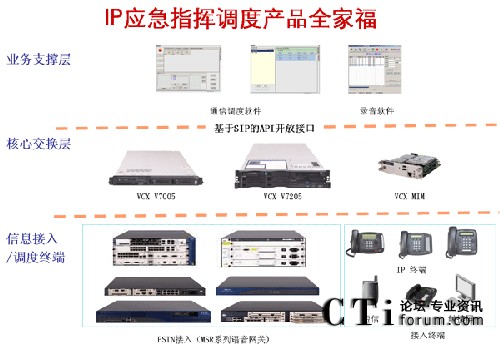 2、“呼叫控制層”指應(yīng)用解決方案的核心組件-軟交換平臺VCX V7000,VCX V7000特點如下: