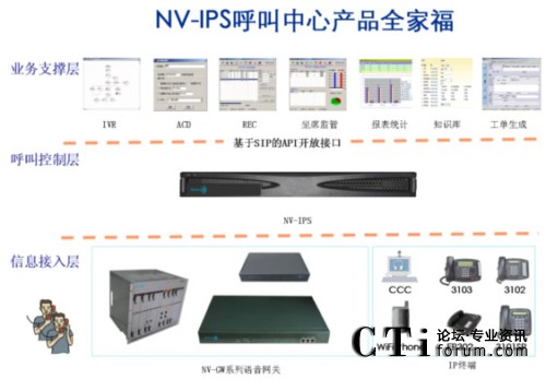 2、“呼叫控制層”指呼叫中心解決方案的核心組件-軟交換平臺(tái)NV-IPS,特點(diǎn)如下: