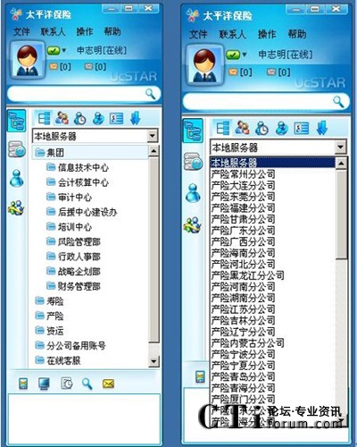 覆蓋全國(guó)的太平洋保險(xiǎn)不僅在各省的城市有分公司,其分支機(jī)構(gòu)也遍布全國(guó)各個(gè)區(qū)縣。如何將各項(xiàng)政策快速有效地傳達(dá)給各個(gè)分支機(jī)構(gòu),成為保險(xiǎn)公司信息總部一直探索的一條“路”。如何讓基層機(jī)構(gòu)也能參與日常的各項(xiàng)大大小小的會(huì)議,如何讓分布在全國(guó)的企業(yè)員工接受良好的培訓(xùn)?傳統(tǒng)的通訊手段似乎難以滿足需要。中國(guó)太平洋保險(xiǎn)(集團(tuán))股份有限公司是全國(guó)性股份制商業(yè)保險(xiǎn)公司,成立于1991年4月,總部設(shè)在上海。大部分分公司已經(jīng)自行使用很多即時(shí)通訊產(chǎn)品,但由于系統(tǒng)分散,各分公司管理能力存在差異,造成目前CPIC內(nèi)部即時(shí)通訊軟件使用相對(duì)比較混亂,部分員工還存在使用MSN、QQ的現(xiàn)象,這種現(xiàn)象已經(jīng)給公司安全生產(chǎn)帶來(lái)了一定的隱患。為此,太平洋保險(xiǎn)集團(tuán)的應(yīng)用理應(yīng)跳出即時(shí)通信的應(yīng)用,選擇一個(gè)擴(kuò)展性、控制性、可管性強(qiáng)大的通信平臺(tái)。