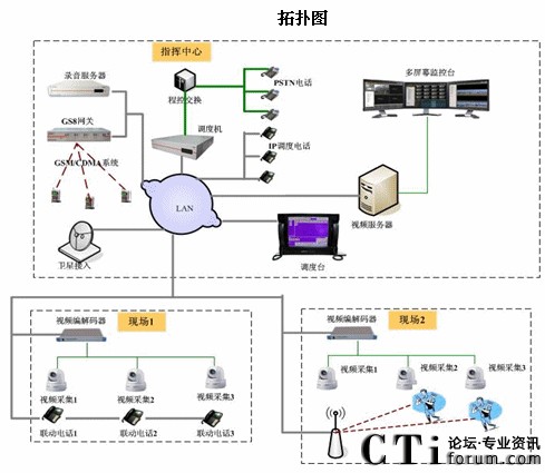 該系統(tǒng)由調(diào)度機(jī)、調(diào)度臺、視頻服務(wù)器、視頻監(jiān)控臺、調(diào)度終端、音視頻一體的終端、音頻終端、綁定視頻終端等組成。