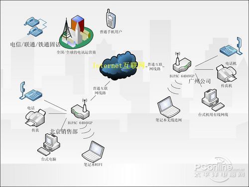 BiPAC 6404VGP其實就是一個VoIP語音網關,VoIP就是一種把語音信號轉換成在網絡上傳輸?shù)臄?shù)字信號的技術,它的應用已經非常成熟,我們經常使用的QQ語音聊天功能也就是VoIP的一種表現(xiàn)形式。在所有大型跨國企業(yè)里我們幾乎都能看到VoIP技術的身影,這是因為電信運營商的長途電話費一般都不便宜,而我們企業(yè)的網絡使用費一般又是包月的,通過無限包月的網絡打免費的國際國內長途電話不就是占電信的便宜嘛?