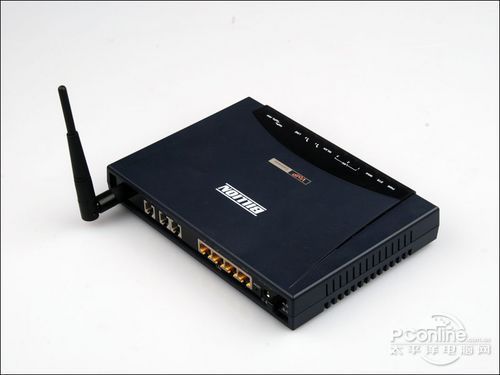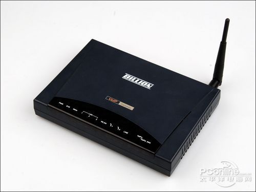BiPAC 6404VGP外觀看上去與一臺普通的無線路由器沒多大區(qū)別,由于是面向企業(yè)級用戶,所以外型設計比較沉穩(wěn)。整機深藍色,在無線路由器的正上方鮮明的標注出它同時還是一臺VoIP語音網關。