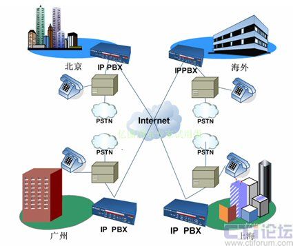 為了實現(xiàn)公司各個辦公地點之間的內(nèi)部通話、節(jié)省長途話費、提高企業(yè)辦公效率等需求,我們的總體設(shè)計圖如下: