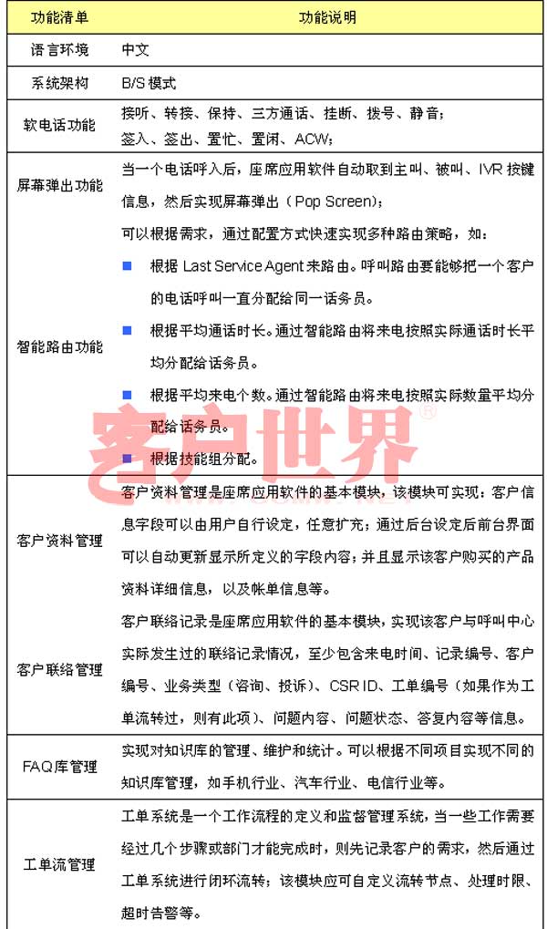 呼叫中心是企業(yè)和客戶互動的溝通平臺,要真正有效管理客戶服務,優(yōu)化客戶服務處理流程,座席應用軟件是呼叫中心建設的關鍵,座席應用軟件與企業(yè)后臺各個業(yè)務系統(tǒng)有機結合,處理包括業(yè)務咨詢、信息查詢、投訴建議、業(yè)務受理等呼入業(yè)務,以及客戶回訪、滿意度調查、電話營銷和派工等呼出業(yè)務。