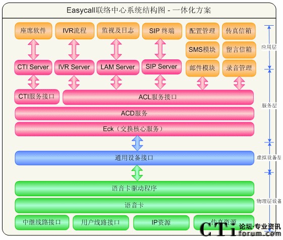 圖2-3 EasyCall聯(lián)絡中心系統(tǒng)結(jié)構(gòu)圖-一體化方案