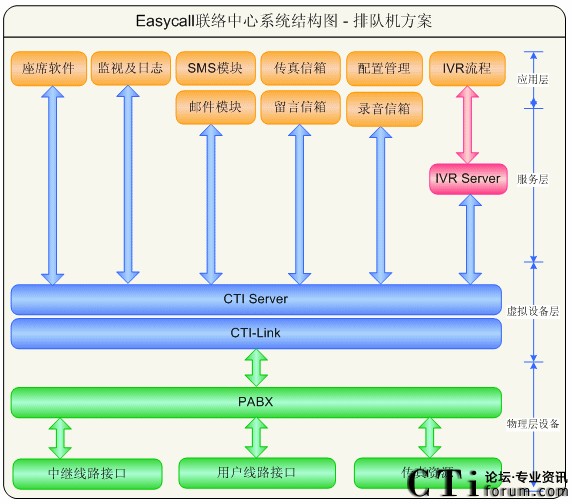 圖2-4 EasyCall聯(lián)絡中心系統(tǒng)結(jié)構(gòu)圖-排隊機方案