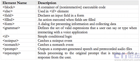Browser),呼叫控制組件(CCXML Browser),自動(dòng)語音識(shí)別組件(ASR),語音合成組件(TTS)等。這些組件共同組成了VoiceXML的解釋和執(zhí)行平臺(tái)。