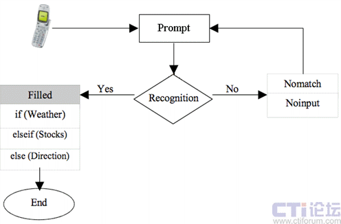 VoiceXML解釋器組件( VoiceXML Browser)解釋和執(zhí)行VoiceXML腳本語言并把結(jié)果轉(zhuǎn)換成語音傳送給用戶(圖中的步驟4)。在執(zhí)行過程中,用戶可能需要通過語音和VoiceXML服務(wù)器進(jìn)行交互,比如菜單選擇或者對(duì)查詢結(jié)果進(jìn)行過濾等。VoiceXML服務(wù)器通過呼叫控制組件(CCXML
