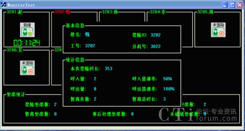 通過坐席監(jiān)控程序,呼叫中心管理人員可以實時監(jiān)控座席的登錄時間、當前狀態(tài)(空閑、忙于外線或內線、正在振鈴、免打擾、限制時間、報警、退出等)、當前狀態(tài)的起始時間、持續(xù)時間、與誰連接等,從而實現(xiàn)簡單明了的質檢功能。我們實現(xiàn)了兩種坐席監(jiān)控:C/S模式和B/S模式。