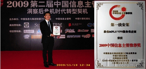 CTI論壇(ctiforum)11月25日消息(記者 張塵):2009年11月19日,2009年中國信息主管年會在北京世紀金源大飯店盛大召開,會議共吸引了各行業(yè)千名CIO線上與線下的參與。作為中國CIO云集的高峰會議,第一線安萊全程參與了本次大會,從產(chǎn)品方案與展示等方面向業(yè)界展示了第一線安萊10年多來在MPLS VPN服務(wù)領(lǐng)域的最佳實踐經(jīng)驗與卓越的市場領(lǐng)導(dǎo)地位,贏得了各與會嘉賓及CIO們的普遍認同和稱贊。