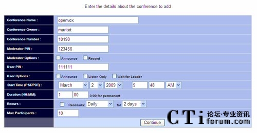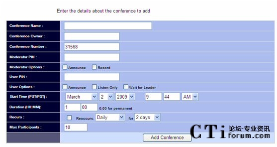 設(shè)定會(huì)議基本信息后,點(diǎn)擊下面的Add Conference button,頁面如下: