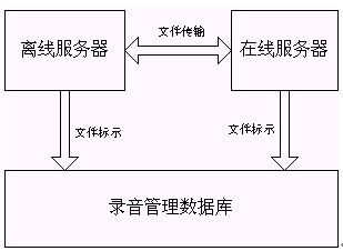 錄音文件通過HXD09交換機將語音文件實時存放到在線服務器上。通過系統(tǒng)的設置,在線服務器將超過保存期限的語音文件移到離線服務器上,同時將語音文件管理數據庫本文件進行標示,標示為已經為離線語音文件,并將在在線服務上的語音文件刪除。