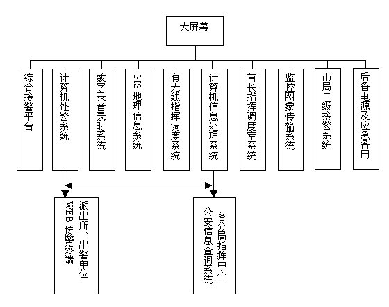本次建設需要采用綜合通信技術,將110、119、122系統(tǒng)的計算機網(wǎng)絡和有、無線通信網(wǎng)有機互聯(lián),建成集接處警信息獲取、統(tǒng)計、查詢、發(fā)布于一體,并通過地理信息和多媒體大屏幕顯示等輔助系統(tǒng)的綜合指揮調度,實現(xiàn)110、119、122快速反應、信息共享的目的。為此,各系統(tǒng)應分別具有下述功能: