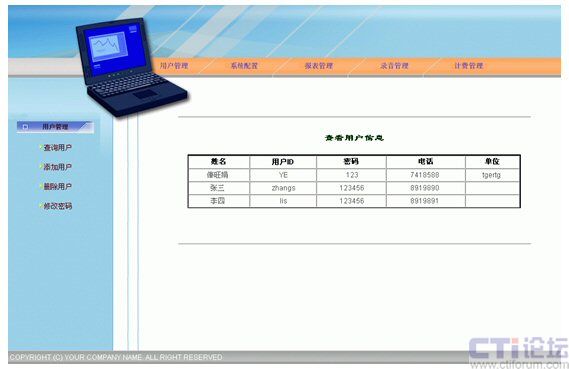 監(jiān)控功能:利用通話錄音、監(jiān)聽等手段,對(duì)服務(wù)質(zhì)量進(jìn)行監(jiān)控,實(shí)現(xiàn)對(duì)服務(wù)員的考核。
