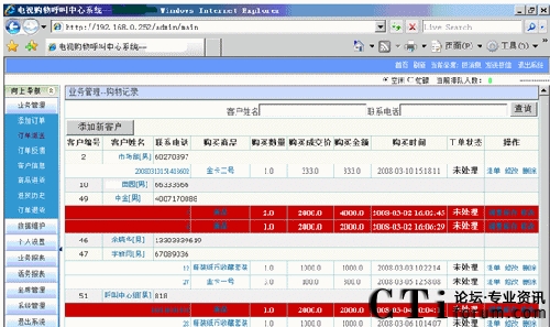 座席員工可以根據(jù)姓名、電話、訂單編號(hào)查詢出客戶的詳細(xì)定購信息、郵寄單號(hào)、歷史定購、咨詢歷史等。