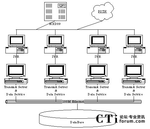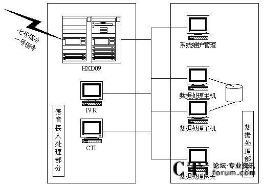 充值卡系統(tǒng)的硬件結(jié)構(gòu)可以分為語音接入處理和數(shù)據(jù)處理兩大部分。