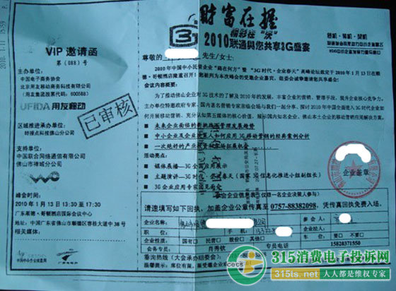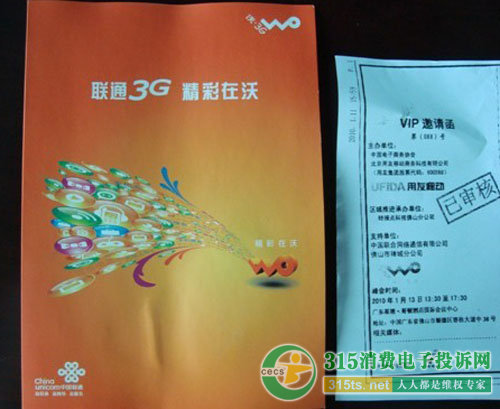 會場到處都洋溢“中國聯(lián)通”的氣息。如現(xiàn)場有眾多中國聯(lián)通的3G宣傳廣告,且發(fā)的材料中還有一份是中國聯(lián)通的宣傳單,另外,會議現(xiàn)場甚至還有聯(lián)通3G手機(jī)銷售柜臺。種種情況讓齊先生等人更堅(jiān)定了他們參加的就是中國聯(lián)通組織的會議。