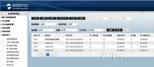 asterCC自動生成的各種數(shù)據(jù)報表,讓您能很快的從成千上萬的通話中分析到關鍵的信息。這樣銷售業(yè)績及客服質量的情況便清晰可見。根據(jù)豐富的數(shù)據(jù)報表,給決策者做戰(zhàn)略性市場定位提供有力的數(shù)據(jù)參考,對業(yè)務的開展也起到了促進作用,同時也便于進行員工的績效考核。