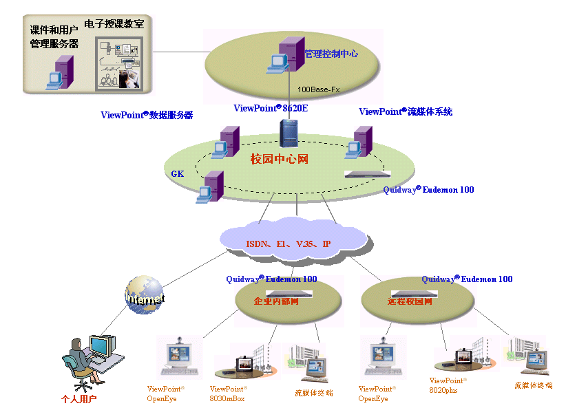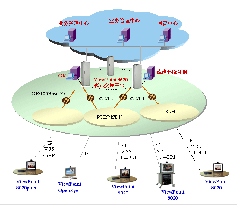 對于專網(wǎng)或非面向運行的視訊網(wǎng)絡建設,“視點通”ViewPoint®8000綜合視訊系統(tǒng)可以提供寬窄帶一體化的視訊交換平臺,提供各種線路接口方式,可充分利用專網(wǎng)和企業(yè)的現(xiàn)有網(wǎng)絡,同時考慮網(wǎng)絡的發(fā)展需要,支持擴展其它接口,保護用戶投資。