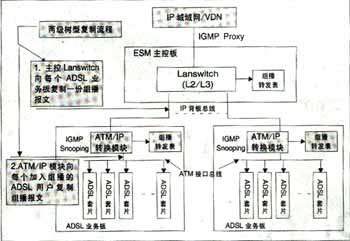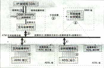 可實(shí)現(xiàn)高效的兩級組播;诳臻g總線上的組播信元技術(shù)實(shí)現(xiàn),與組播用戶數(shù)無關(guān),同一節(jié)目即使所有用戶加入該頻道,僅需復(fù)制一份,不用逐個(gè)用戶復(fù)制到每個(gè)用戶端口,極大節(jié)省了背板帶寬,減輕IP上行負(fù)擔(dān)?蓪(shí)現(xiàn)高性能硬件組播轉(zhuǎn)發(fā)。IP上行板采用超大規(guī)模FPGA硬件邏輯處理組播報(bào)文,ADSL板采用空間組播處理硬件芯片自動完成向每個(gè)ADSL端口(用戶)的組播復(fù)制,每ADSL端口組播帶寬6M。