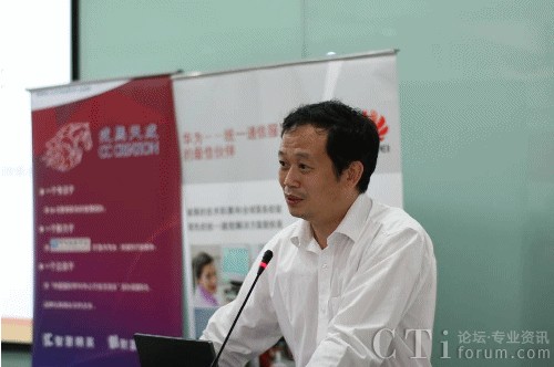 圖:華為軟件UC市場(chǎng)技術(shù)經(jīng)理穆立昌分享華為統(tǒng)一通信解決方案