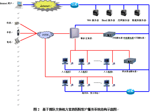 醫(yī)院客戶服務(wù)系統(tǒng)是一個(gè)集合電話語(yǔ)音、計(jì)算機(jī)網(wǎng)絡(luò)、數(shù)據(jù)庫(kù)等技術(shù)的綜合信息服務(wù)平臺(tái),主要由自動(dòng)語(yǔ)音應(yīng)答系統(tǒng)、人工座席和數(shù)據(jù)庫(kù)系統(tǒng)三部分組成。