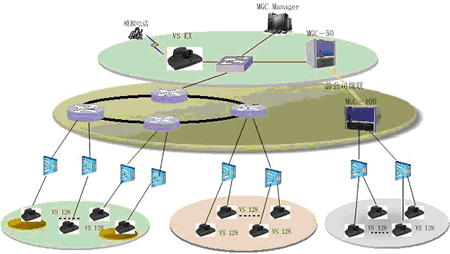 一般來說,在省公司同時參與會議的人數(shù)較多,考慮配置比較大的系統(tǒng),由某一領(lǐng)導(dǎo)召集一些相關(guān)成員在此開會;在地市公司同時參與會議的人數(shù)較少,只是一些主要領(lǐng)導(dǎo)參加會議,考慮配置比較小的系統(tǒng);同時,為了實現(xiàn)終端之間管理和傳送音頻、視頻和數(shù)據(jù),需要MCU來協(xié)調(diào)終端的工作,并與上級MCU相級聯(lián),擴(kuò)大會議的規(guī)模。另外,可以增加一套T.120服務(wù)器,該系統(tǒng)是利用多媒體技術(shù)幫助使用者對工作中的各種信息進(jìn)行處理,如共享數(shù)據(jù)、共享應(yīng)用程序、實現(xiàn)文件的雙向傳輸?shù),從而?gòu)造出一個多人共享的工作空間。以及增加一套VOD系統(tǒng),它集視頻采集、點播、廣播于一體,這樣就可以將視頻會議的內(nèi)容實時的錄制到本地,也可將一些培訓(xùn)資料放在視頻點播里,便于對貴公司員工進(jìn)行培訓(xùn),還能通過視頻廣播的功能,讓使用PC機(jī)的人員不在會議室,便可以通過瀏覽器實時的看到和聽到正在召開的會議。