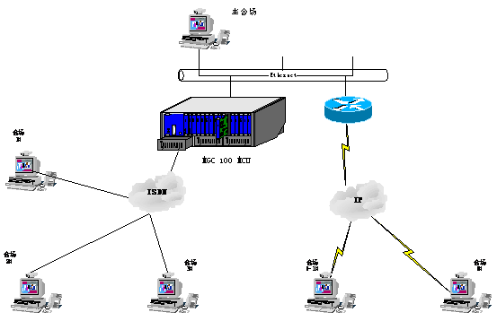 MCU(Multimedia Collaboration Unit)--多媒體資訊交流單元,一個(gè)能為多個(gè)終端用戶提供電視會(huì)議以及帶視象、話音和數(shù)據(jù)的多媒體資訊交流的實(shí)時(shí)網(wǎng)絡(luò)產(chǎn)品。